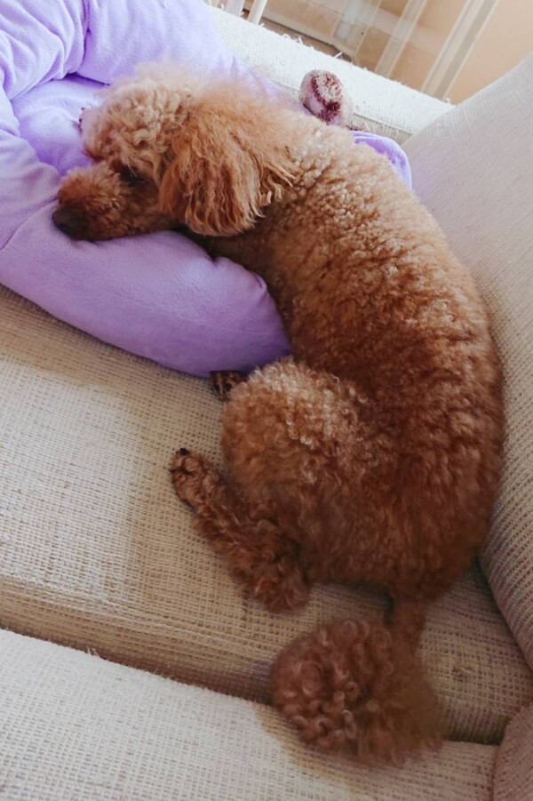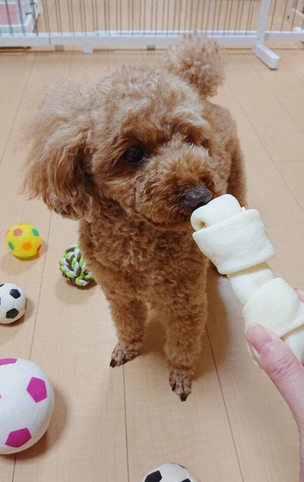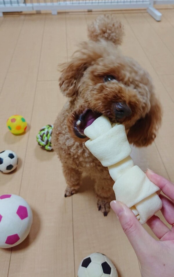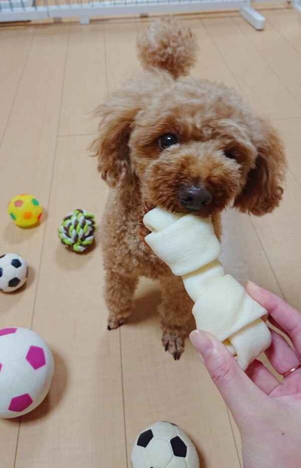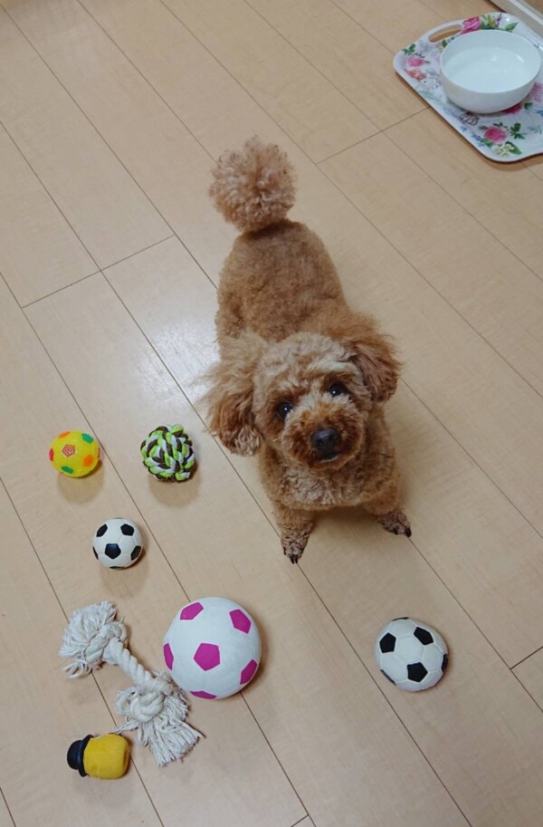 前回は同じトイプーの、はなちゃんが一緒に遊んでくれたからとても楽しそうだったけど、1匹だと退屈そう(ㆀ˘・з・˘)💦