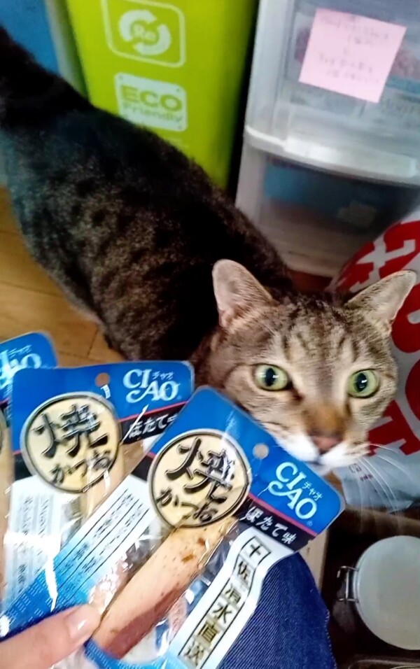 相変わらず食いしん坊で、カツオを出すとスリスリが止まりません♪