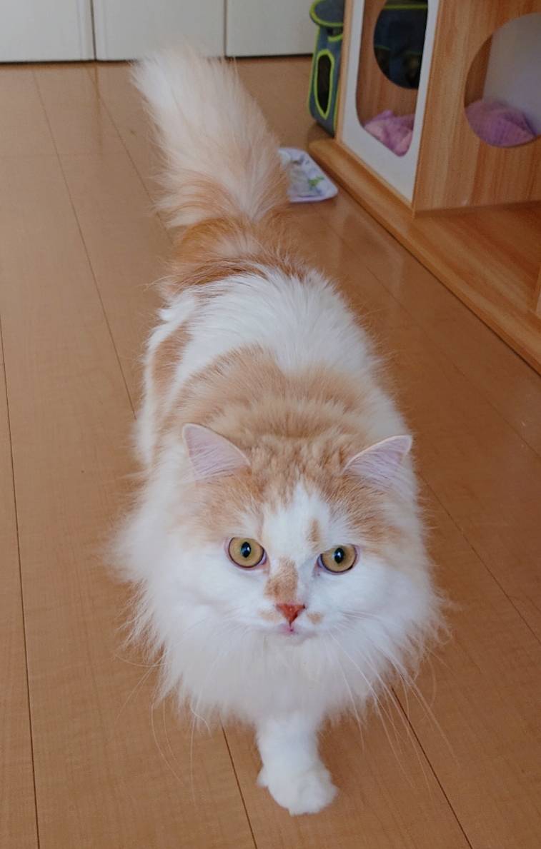 マグロのフリーズドライをかけてあげると、ちょっとご機嫌♪♪尻尾を立てて寄ってきてくれます❤