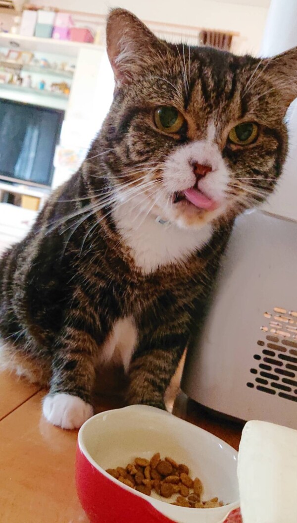 自動給餌器のお皿洗うから、残ってたご飯はこっちに移しておくねって置いたら食べてくれました(笑)