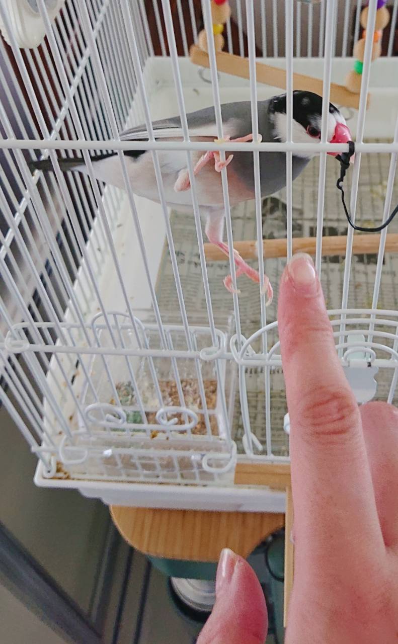 なのでシッターも知っている限りの鳥の甘え声を出して、ケージに手を入れさせて頂きました(*˘︶˘*).。.:*♡鳥も好き❤