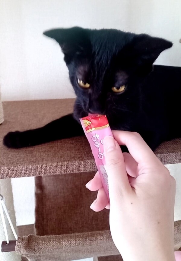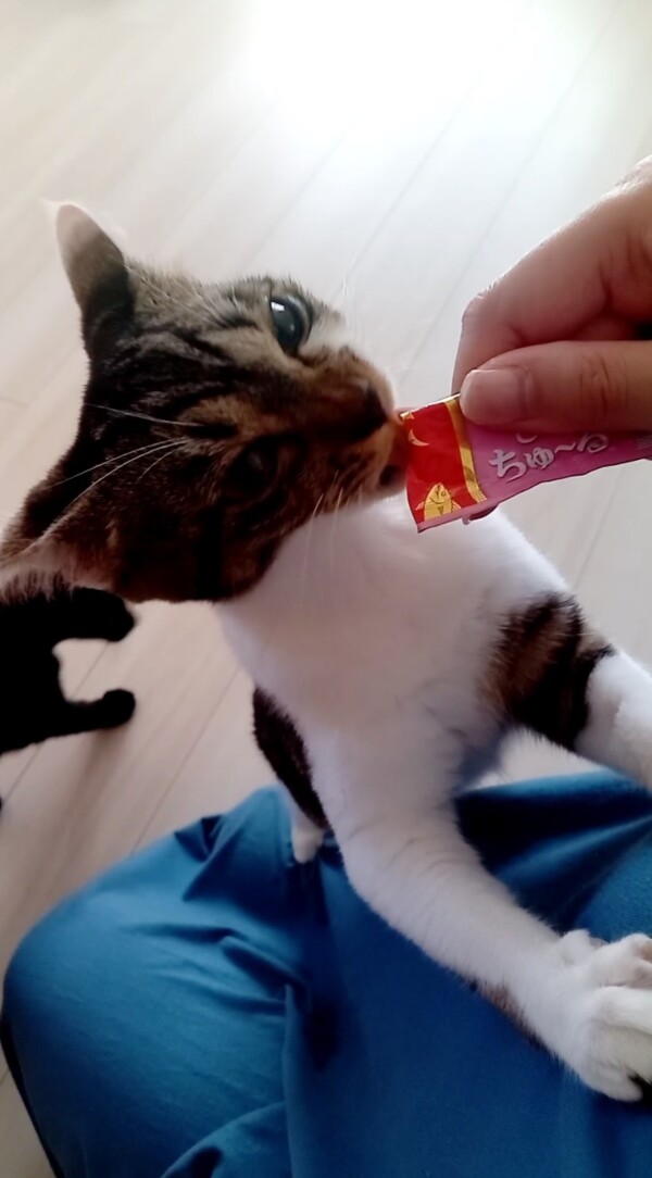 ちなみに、なのちゃんはシッターによじ登って来てチュール食べます(笑)胸に爪刺さってます(笑)
