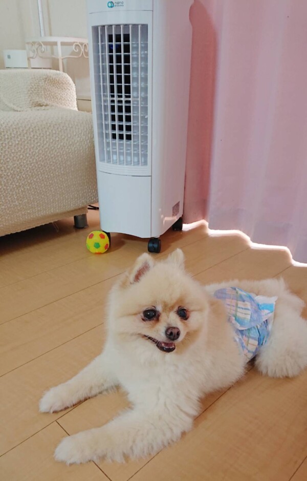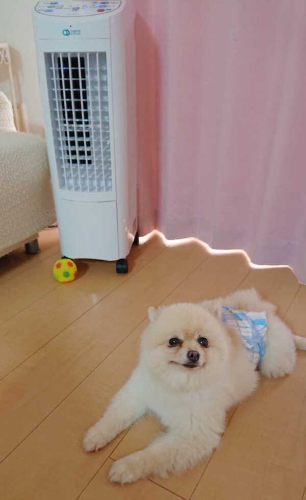 今回のハント君のお気に入りは、新しく購入した冷風機🍀