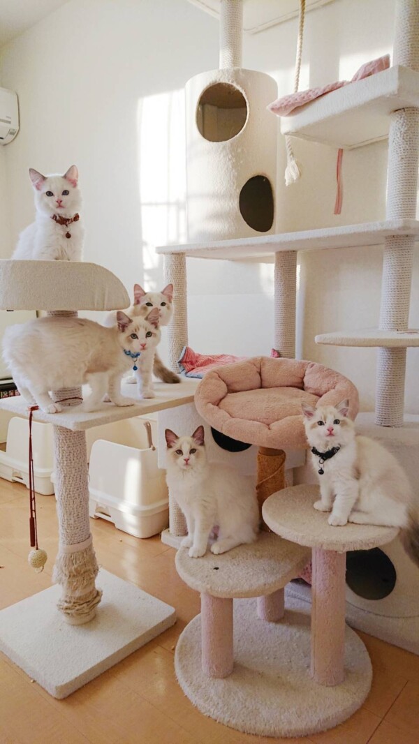 パパ猫神楽(かぐら)に見守られながら、子供は子供同士で遊んで馴染んで行きました🍀🍀🍀