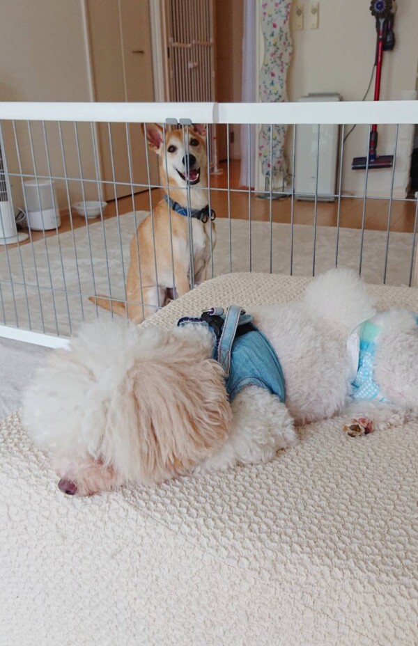 入室時に先にお泊り来ていたワンコの吠声に入室拒否をして、シッターSHIORIに無理矢理入室させられた、極度の犬みしり、コメ君(*´ω`*)