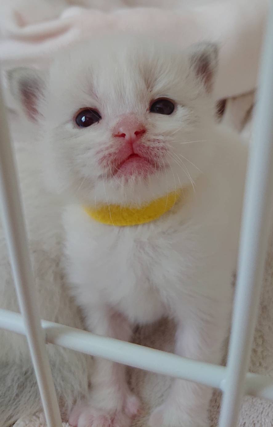 小さな体に母性愛がたっぷり。今までで1番子育て上手なママに。神羽同様、1度も怒った事がない穏やかな性格。ひ弱そうに見えて実はchat conciergeの中で1、2を争う健康体。免疫力がとても高く、生まれて来る子供達もママの体に似合わず大きめ。最近、人見知りが薄らぎお客様の前に姿を現す事も。レアキャラなので見れたらラッキーです(笑)