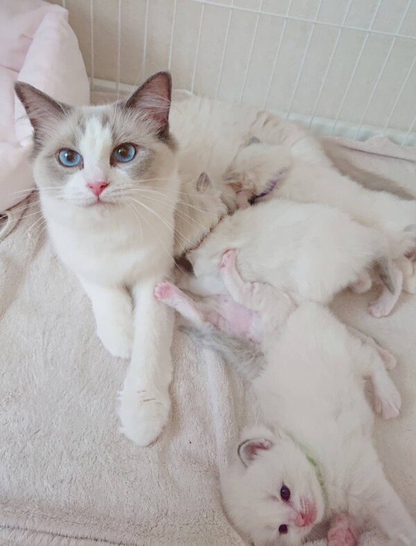 今回も4匹の可愛い天使達を迎えてくれました❤(ӦvӦ。)