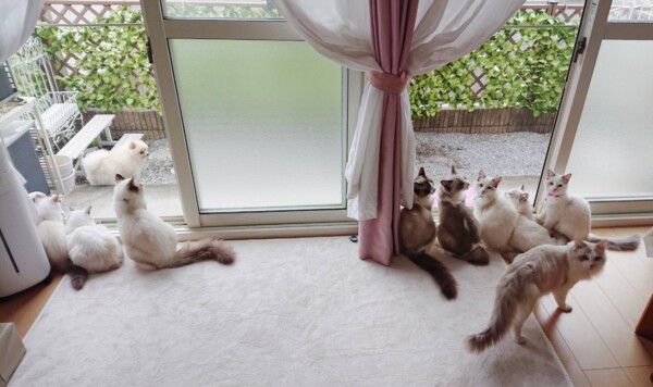 猫部屋2部屋満室、パソコンはノートパソコンなので動かせるとして、複合機はシッターSHIORIのデスク兼寝室のプライベートルームなので、うちの猫達はその間、犬部屋に…と思っていましたが(;´∀`)