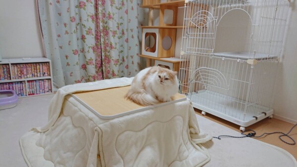 寒がりではないモモ君だけど…コタツいる??(ㆁωㆁ*)