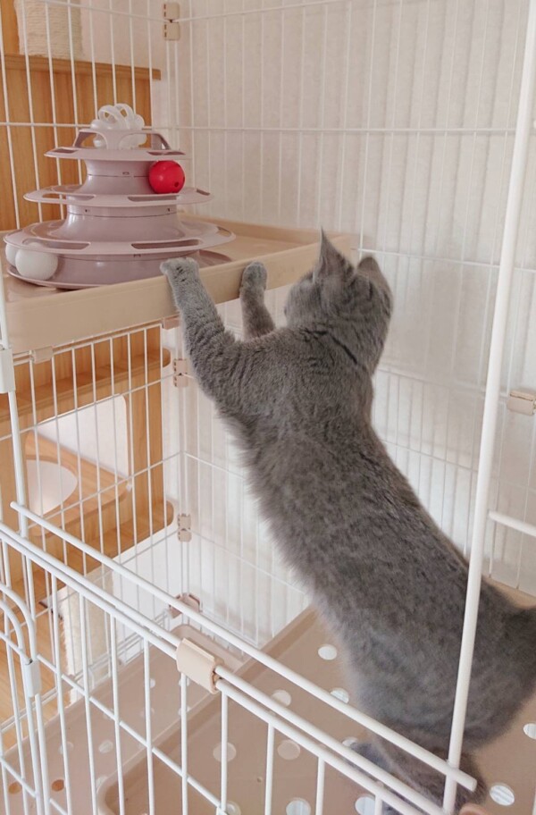 ケージの中でも退屈しないようにオモチャを置いてみたり🌼