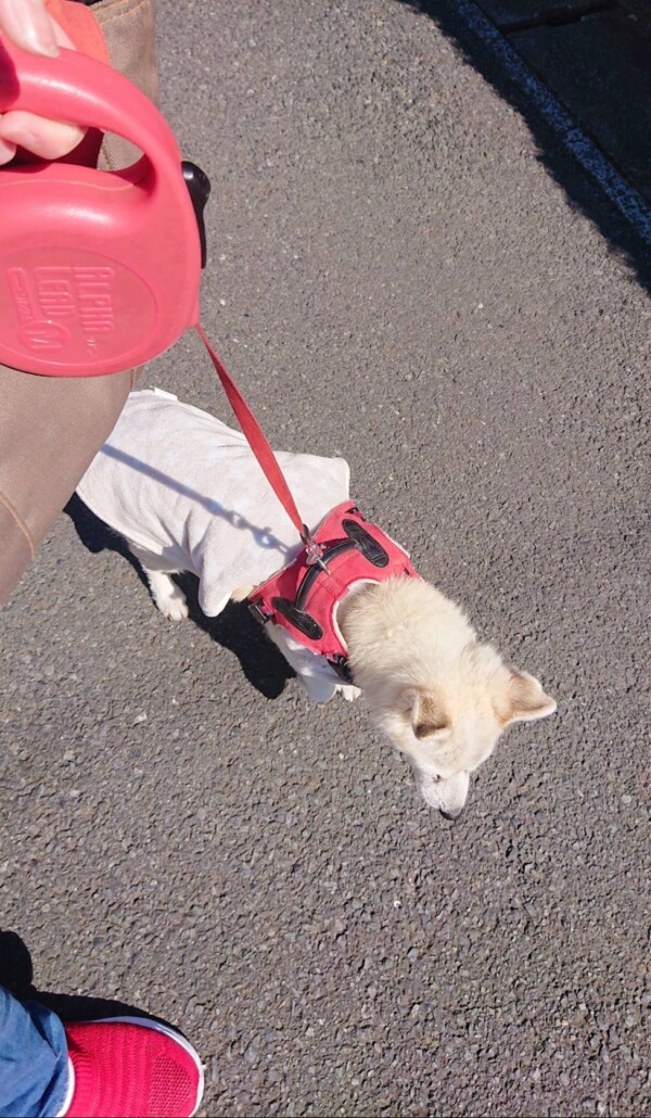 早く立ち去りたいけど、そんな事よりくうちゃんの歩行に合わせるのが先決٩(๑òωó๑)۶警察に連絡しないでね(*´艸`*)