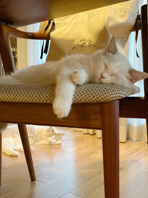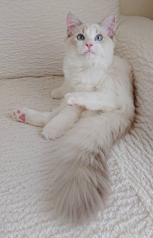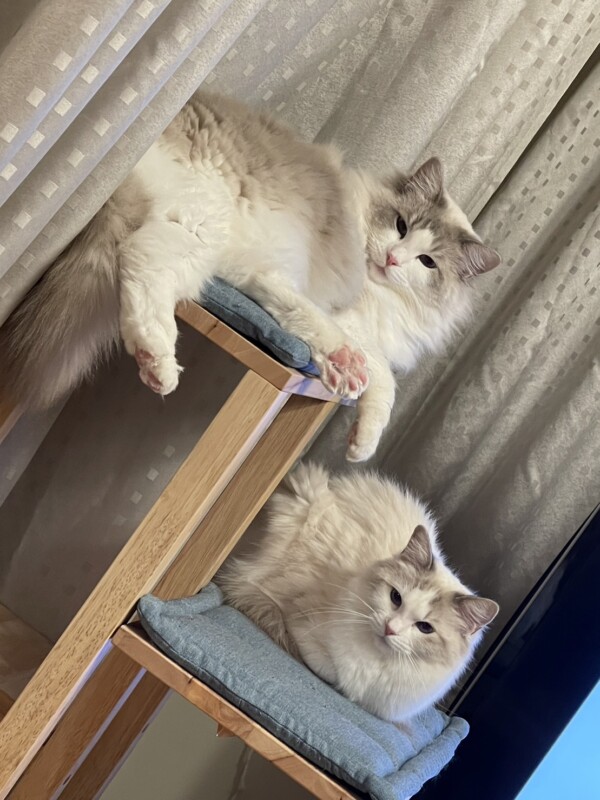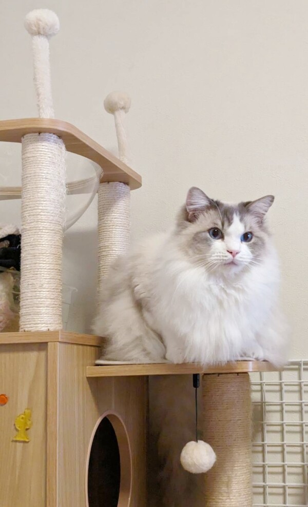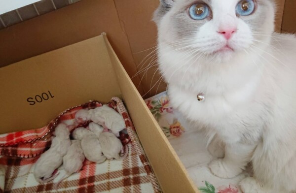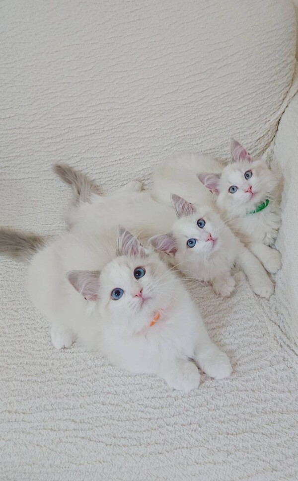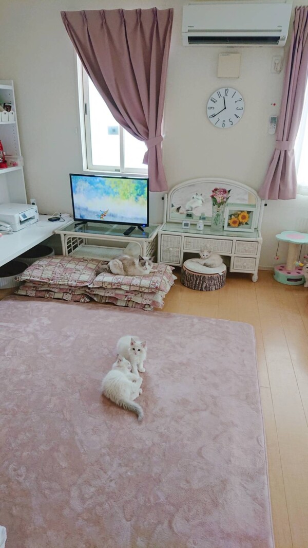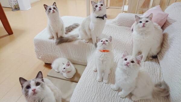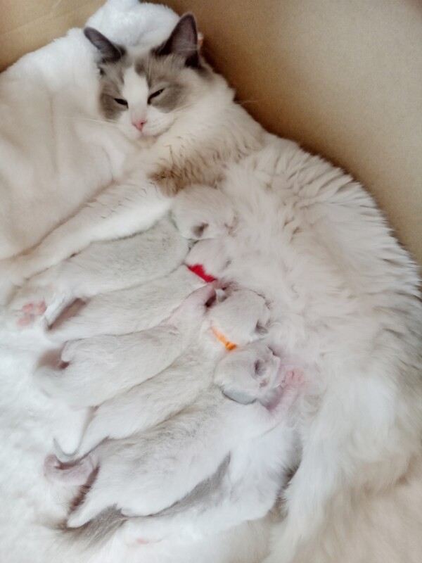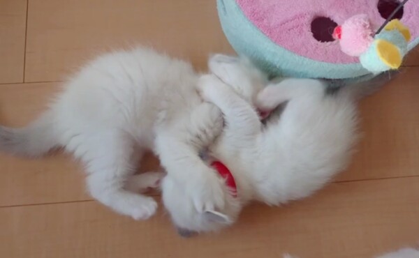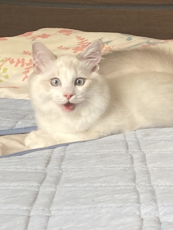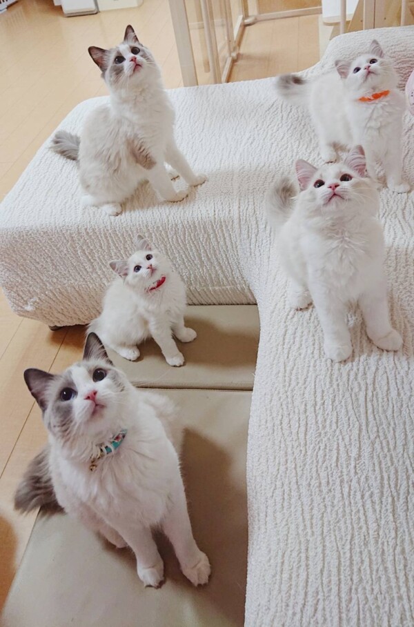去年6月生まれライトブルー君ことレオ君のオーナー様が、レオ君に妹をと2匹目も当キャッテリーを選んで下さいました٩(♡ε♡ )۶名前は『レミちゃん』に❤レミちゃんはとても甘えん坊で可愛いのですが、うちの詩音や神桜のように分離不安症(1匹の時間が長いと不安から問題行動をおこす)の可能性があったので、御家族様がいつも誰かいるか、または(犬は好きではないので)先住猫がいるかの縛りがあったので、なかなかオーナー様が決まらず( ;∀;)ラグドール大好き旦那様と、今回もうちのお泊りワンコとラグドール達をまとめて遊んで下さる素晴らしき両刀動物使いの奥様(笑)とレオ君のいるお家で本当に良かったです🍀今後も異母兄妹2匹の絡みの御報告お待ちしております(*´艸`*)