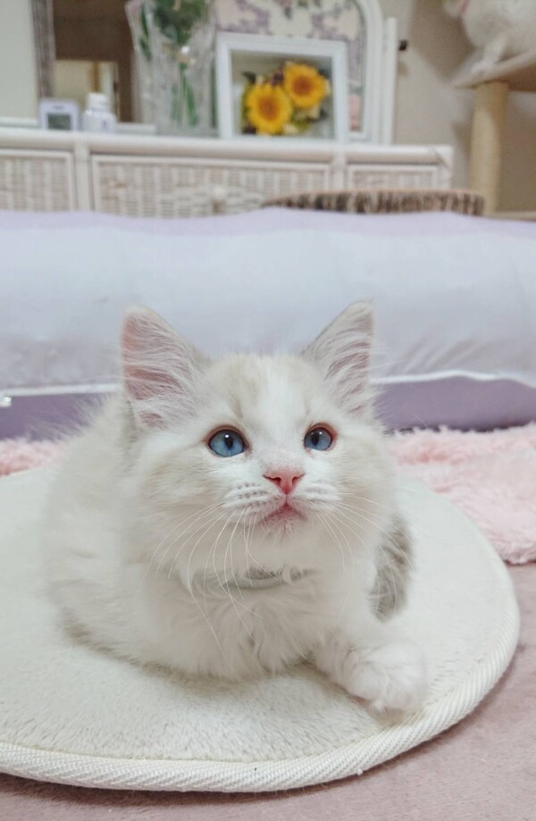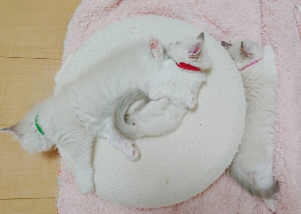 ○ラグドールは他の猫種と違って緩やかな成長です。生後半年位までは免疫が安定せずに小さな変化にもすぐに病院へ連れて行く必要があります。それに対応出来る生活スタイルの方でお願い致します。難しい方は免疫が安定するまで当キャッテリーで育ててからの引き渡しを御相談承ります。