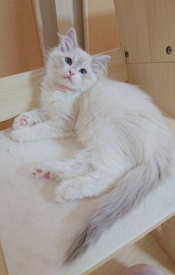 生後11ヶ月ですが、待ちに待った素敵な御縁に巡り会えて無事に巣立ちました(*´∀`*)名前は『ハク』に✨同じ千葉県から、温和な旦那様に、しっかり者の奥様、美人の娘様と、先住猫の『エマちゃん』もいる御家族様の所へ🍀他のブリーダー舎も見たらしいのですが、当キャッテリーを選んで下さり光栄です❤(ӦvӦ。)去年、ワンコちゃんを亡くしたらしく。゚(゚´Д`゚)゚。そのポッカリと空いた穴をハク君が埋められると良いのですが(。ŏ﹏ŏ)ガンバルンダゾ!大きくなってからの巣立ちなので、新しい環境に馴染むまで少し時間がかかると思いますが、我が家顔をしている姿を楽しみにお待ちしております♪