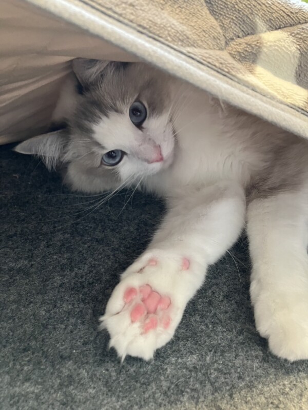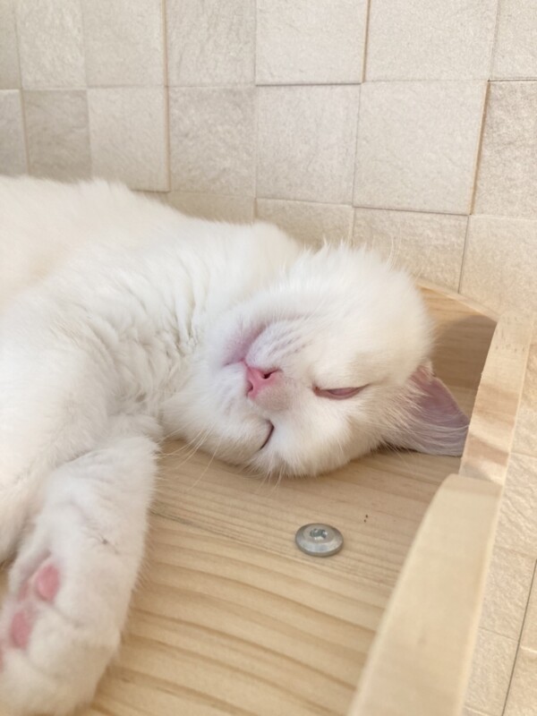 子猫の新陳代謝は早く、5日程で爪が伸びるので、その度にマメな爪切り、パッド周りをバリカンカットをしているので、ケアにも慣れっ子になり大人しくさせてくれます♪