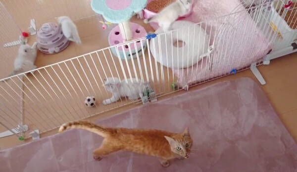 成猫達が落ち着いてるのを見て安心したらしく、すぐに遊び始めてました(*´艸`*)