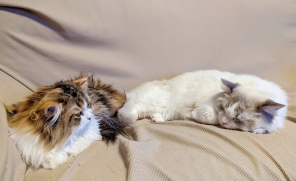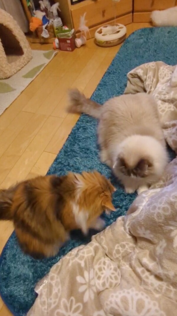 少し時間かかりましたが、すっかり先住猫ちゃんと仲良しで一緒に遊んでいるようです❤(ӦvӦ。)