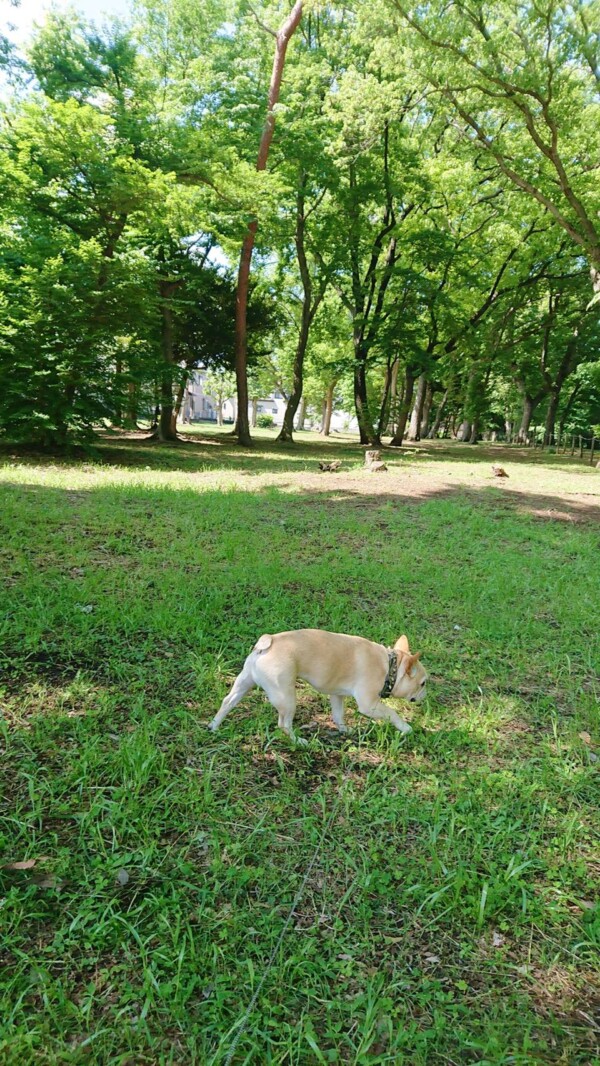 1匹お散歩だとのびのびロック君♪