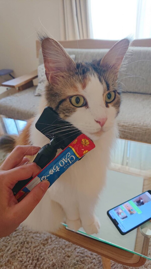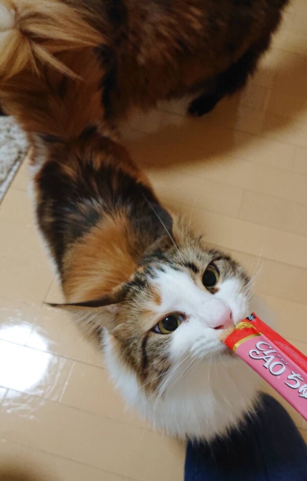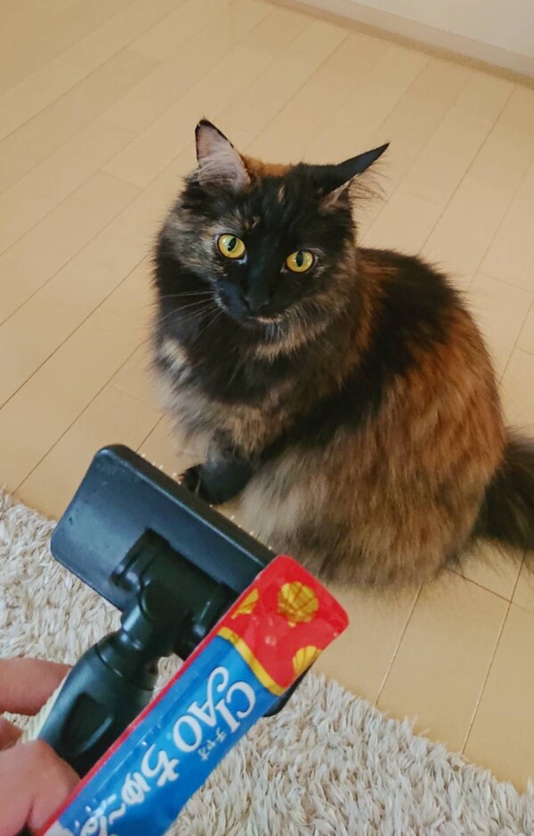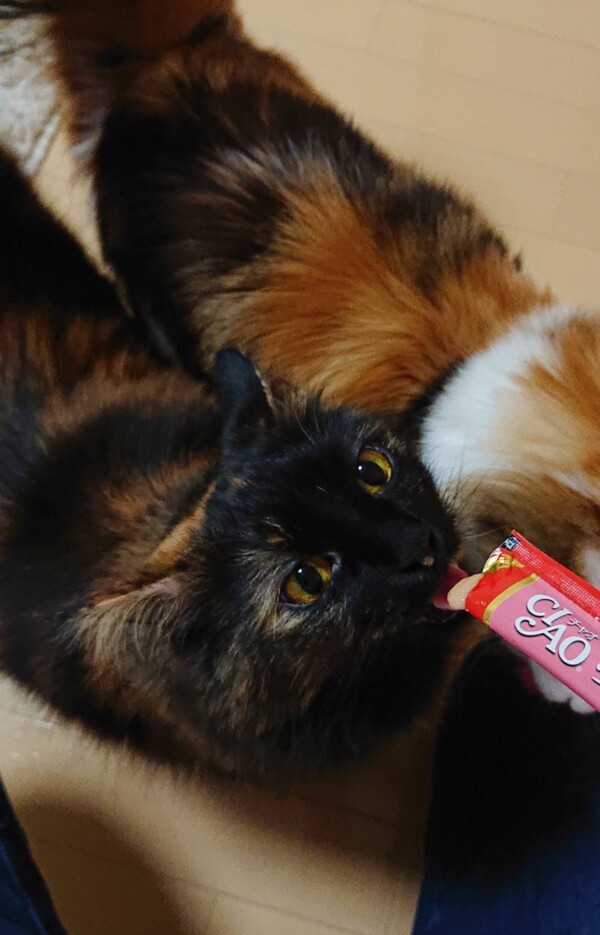 ご褒美のチュールを目当てに大人しくワサワサやらせてくれます(*´艸`*)良い子❤