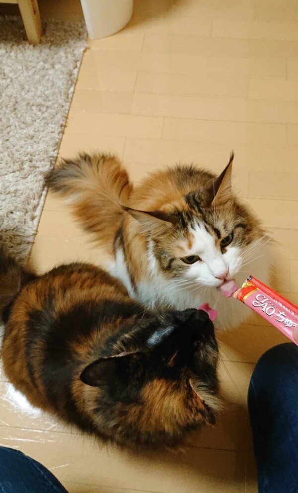 2匹で1本のチュールを仲良くね♪