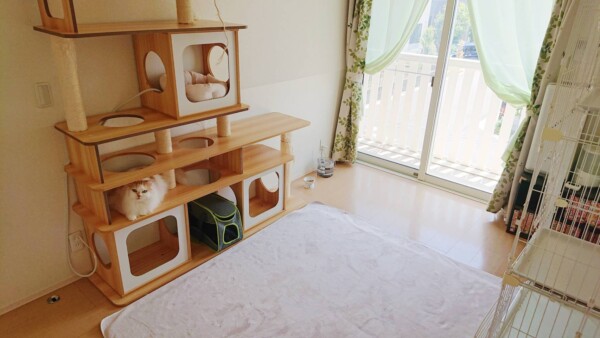 いつもピンクのお部屋のモモ君が、初めての緑のお部屋(*´艸`*)🍀🍀🍀