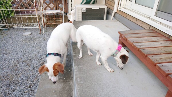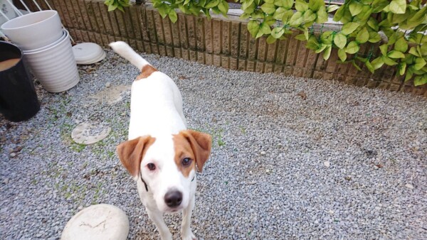 お庭遊びにすっかりハマったハク君