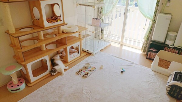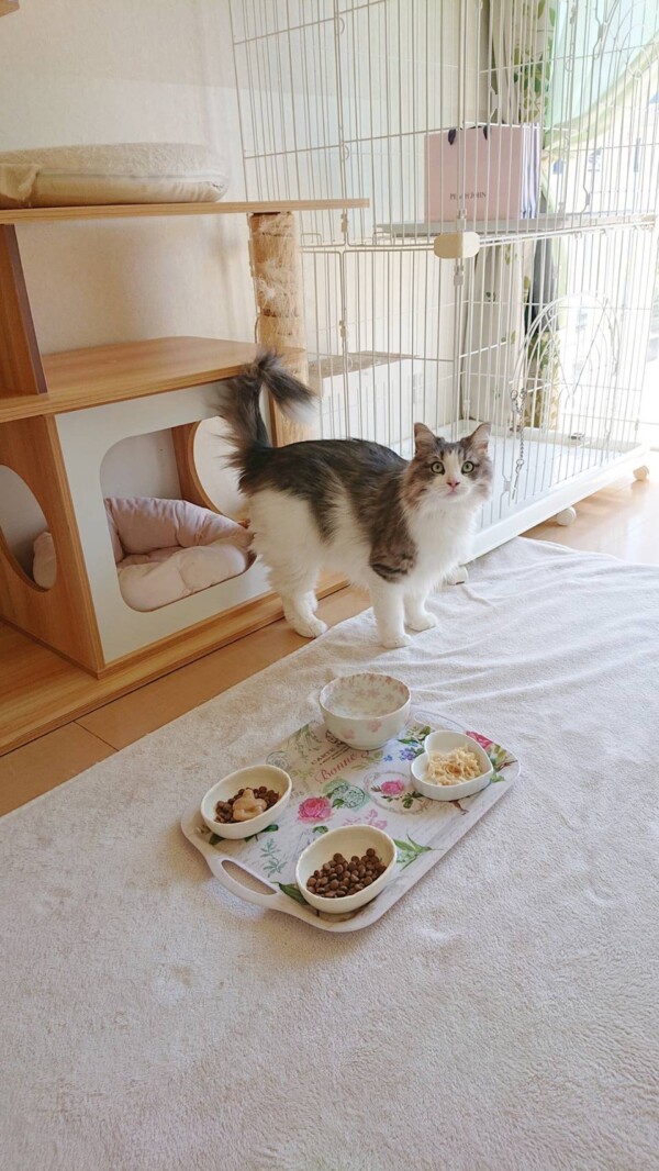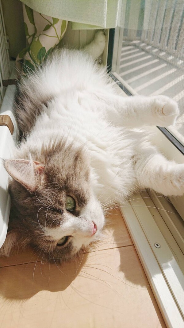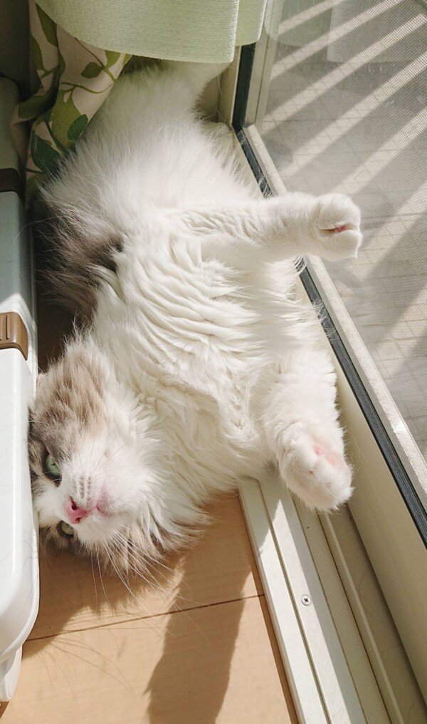とても甘えん坊さんで、ナデナデやブラッシングも好きなのですが、その気持ちをシッターに素直に出しきれずにタワーや床にスリスリゴロゴロ🍀シッターから来てくれるのを待っています(*´艸`*)❤(笑)