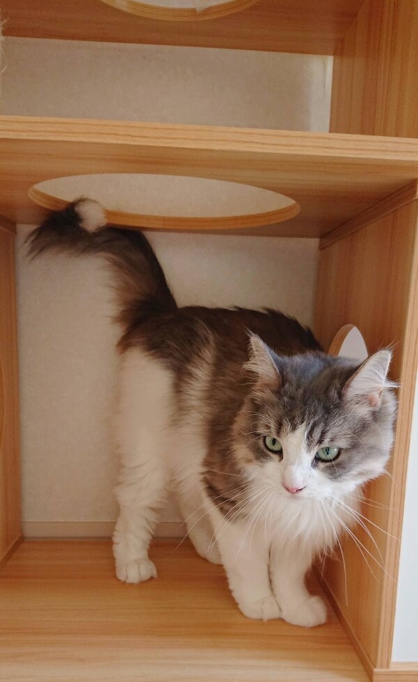 1階から聞こえるワンコの吠声が苦手みたいで、とにかく遠くへ遠くへと逃げた結果、この場所に落ち着いた模様🍀