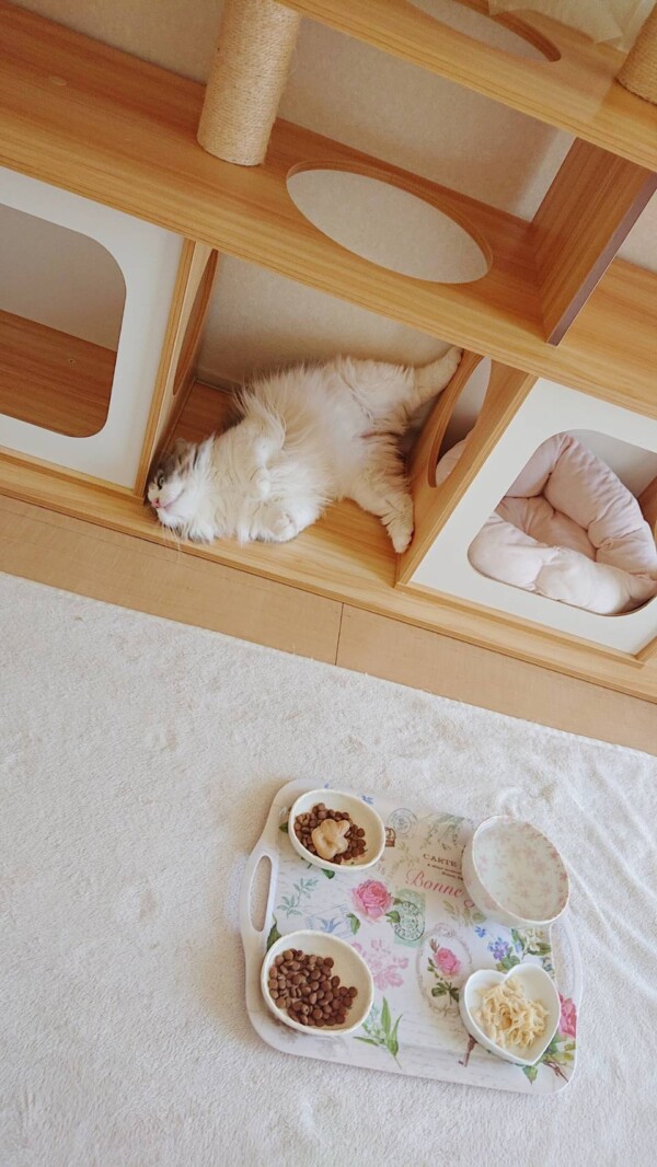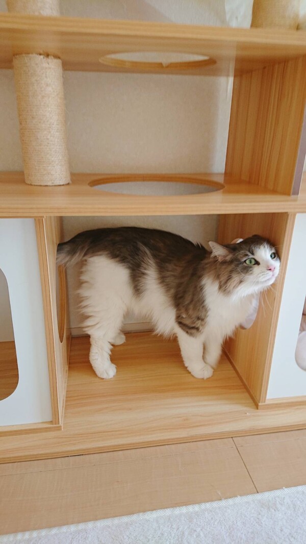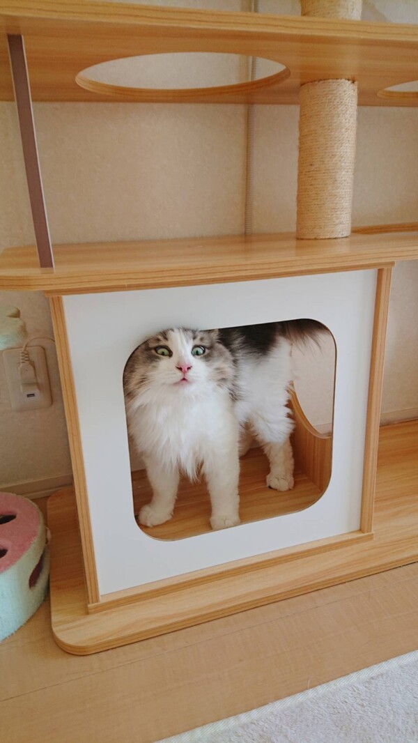 吠声が聞こえなくなると、タワーで寛いでくれるように❤(ӦvӦ。)