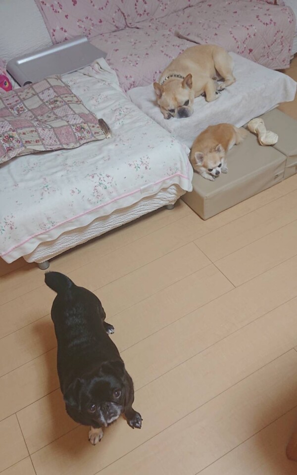 常に元気にチャカチャカ動き回るはなちゃんと、ダルダルのジョナ君&ロック君(笑)