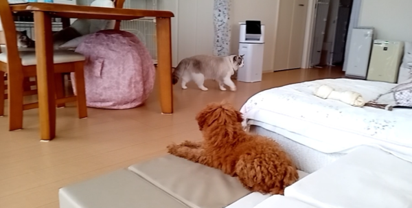 「わ!でっかい猫さんだワン!」