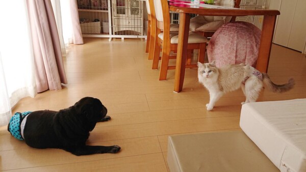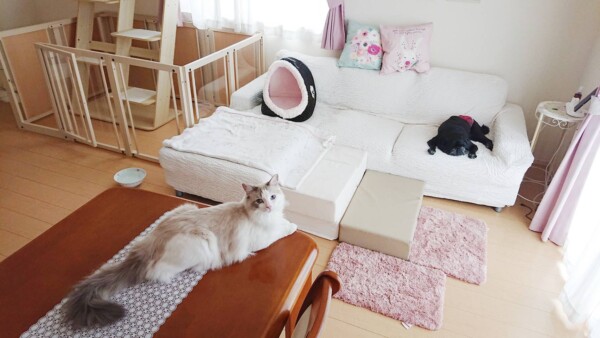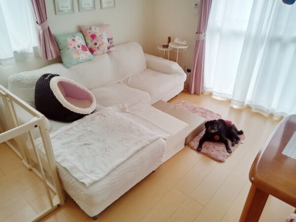 ソファーへの登り降りのしやすさを考えて、チャド君パターンは最終的にはこんな感じ🍀(ワンコによってレイアウト変わります)