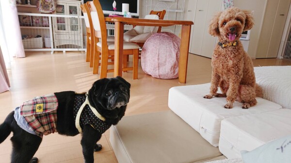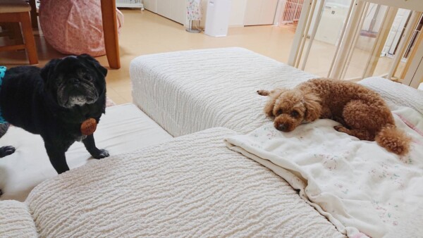 「ソファーに上がるのも、シッターさんの横に行くのも駄目だワン!僕だけだワン!!」