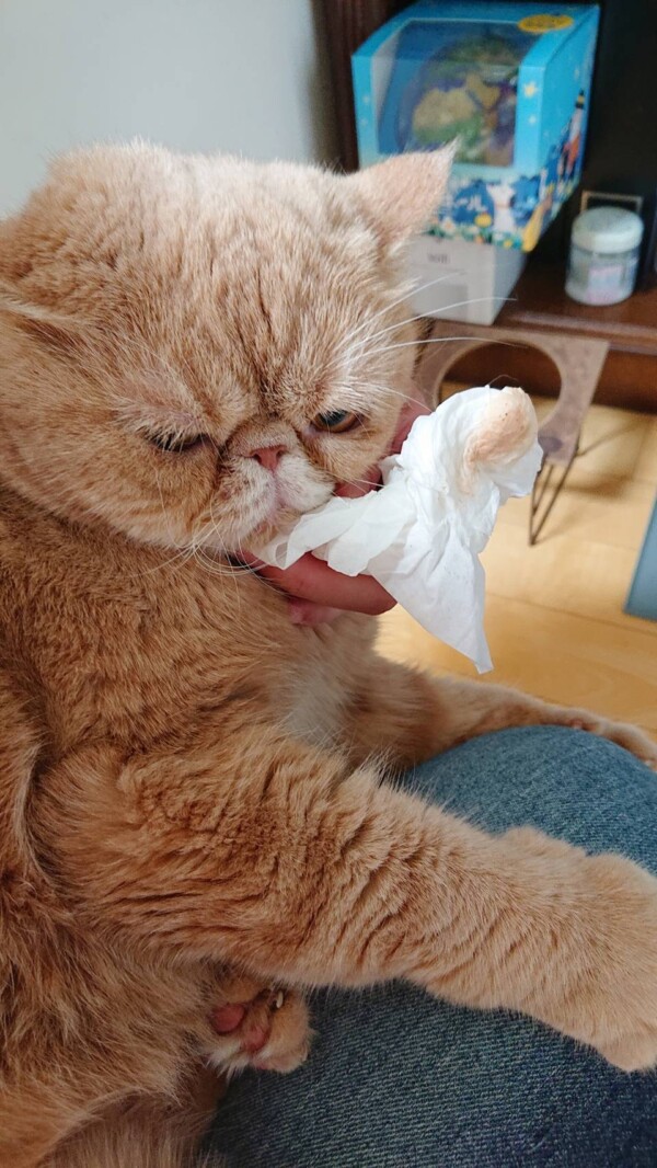 ティッシュを持った瞬間にテーブル下から出てこなくなります(。ŏ﹏ŏ)💦