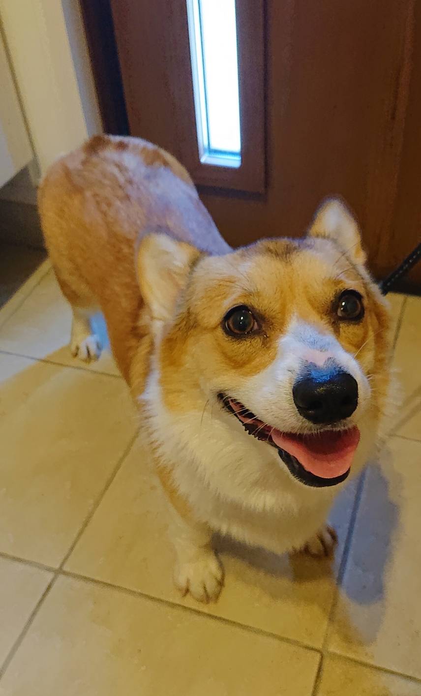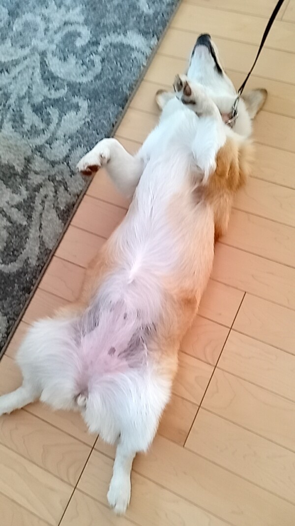 全く吠えずに完全服従ポーズでお出迎え(笑)