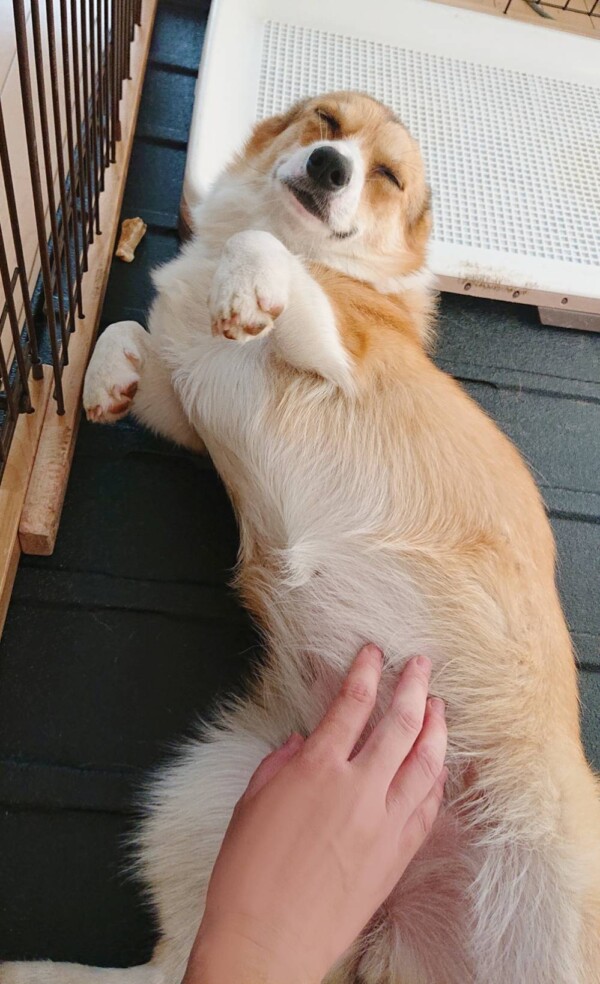 最初の頃は、入室したら吠えるわ、マズルを触ろうとしたら咬むわ、お散歩はグイグイ引っ張り警察犬並に地面に鼻をつけて何か落ちていないか常に拾い食いを狙い、サークルに戻そうとしても逃げ回って捕まらなかった、そんなむうちゃんでした(*´艸`*)(笑)