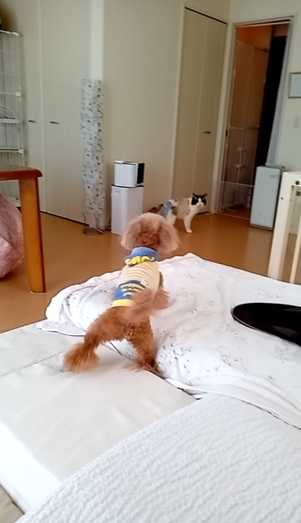 こうなると、いつも通り、ペットベッドを折り畳んでハッスルしたり♪フワフワの所をカミカミしたり(笑)