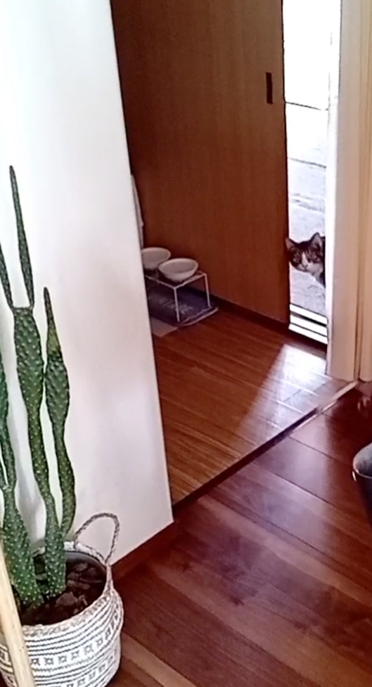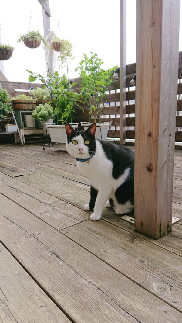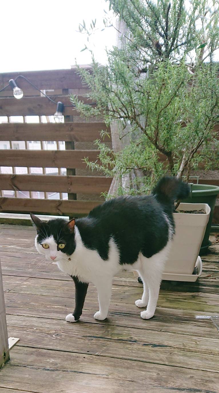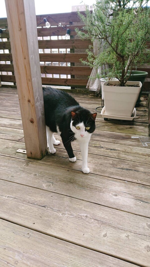 猫ドア設置で、バルコニーに自由に出れるようになってました(´゚д゚`)✨これは凄くいいですね♪♪♪