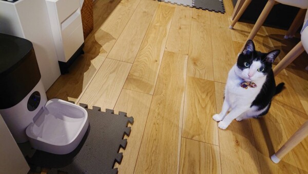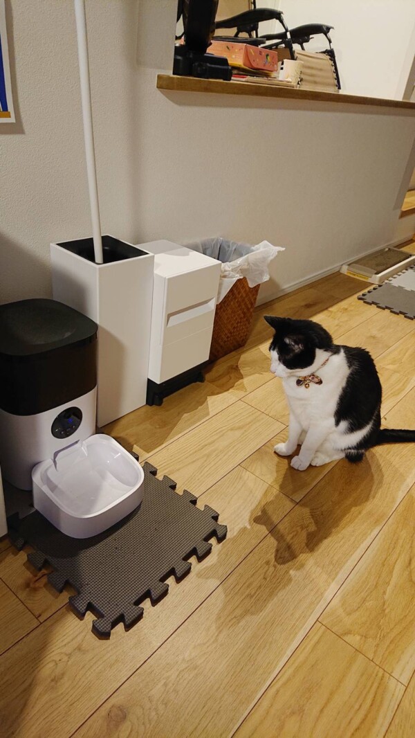 いつも通り、自動給餌器からご飯が出てくるはずなので、ちょこっとドライフード🍀