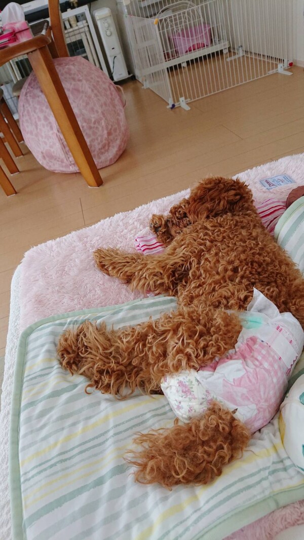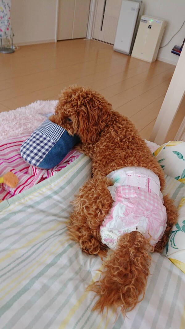 シッターのスリッパに鼻を突っ込んでいると落ち着くらしく…(。ŏ﹏ŏ)ナンダカハズカシイ
