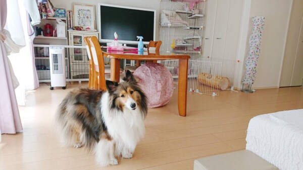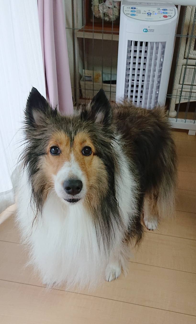 ドライヤーの後の残りの湿気を自ら扇風機に当てて乾かす、お利口なミルちゃん❤