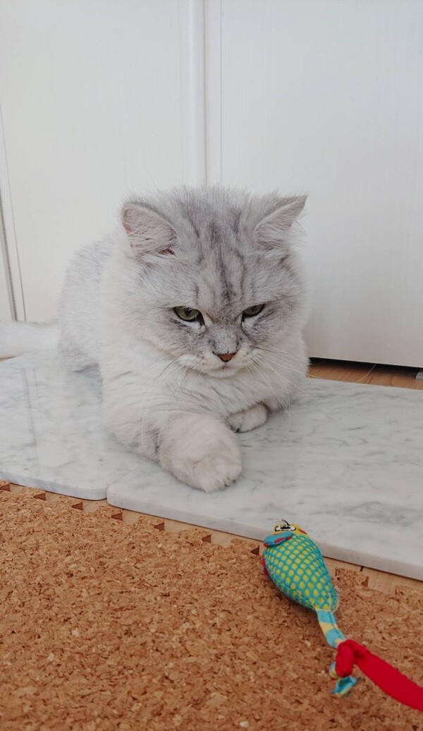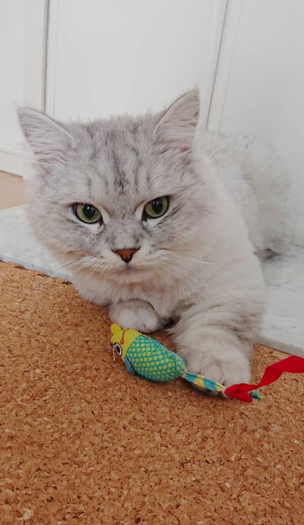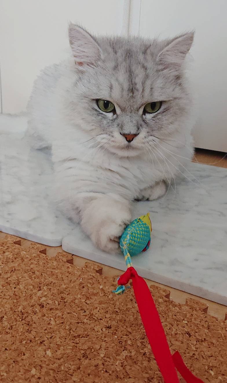 オヤツくれたし、シッターが遊びたそうなので、仕方なく構ってくれる感じ(笑)