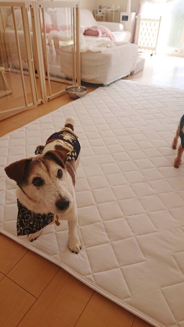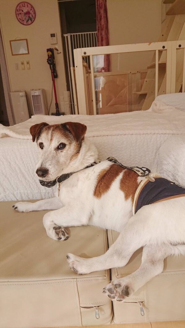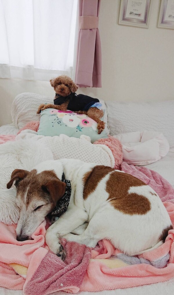 最初はバーニー君を追いかけて、その後は猫を追いかけて、15歳とは思えない程の体力を発揮したログ君でしたが、翌日はずーーーーっっと、爆睡してました(*^▽^*)🍀🍀🍀