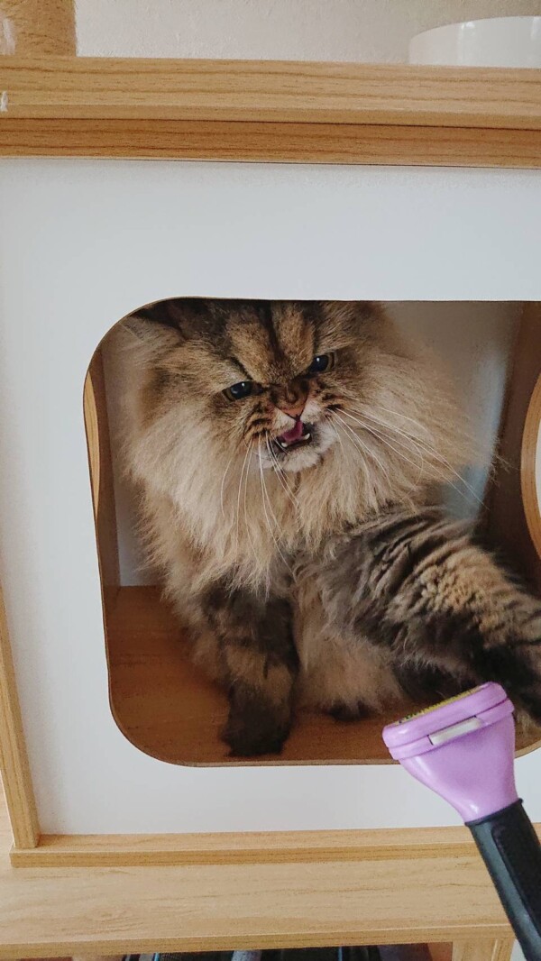 換毛期なので、お泊り中に毛玉が出来ないようにブラッシングしたいのですが、それは断固拒否です(。ŏ﹏ŏ)💦