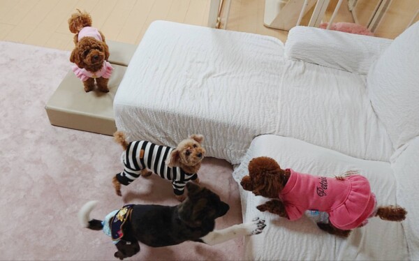 そこは、犬の幼稚園や躾教室のトレーナーさんのお仕事かもしれませんが、小型犬〜中型犬はトレーナーつけなくても十分ご家庭で頑張れると思うのです(;´∀`)