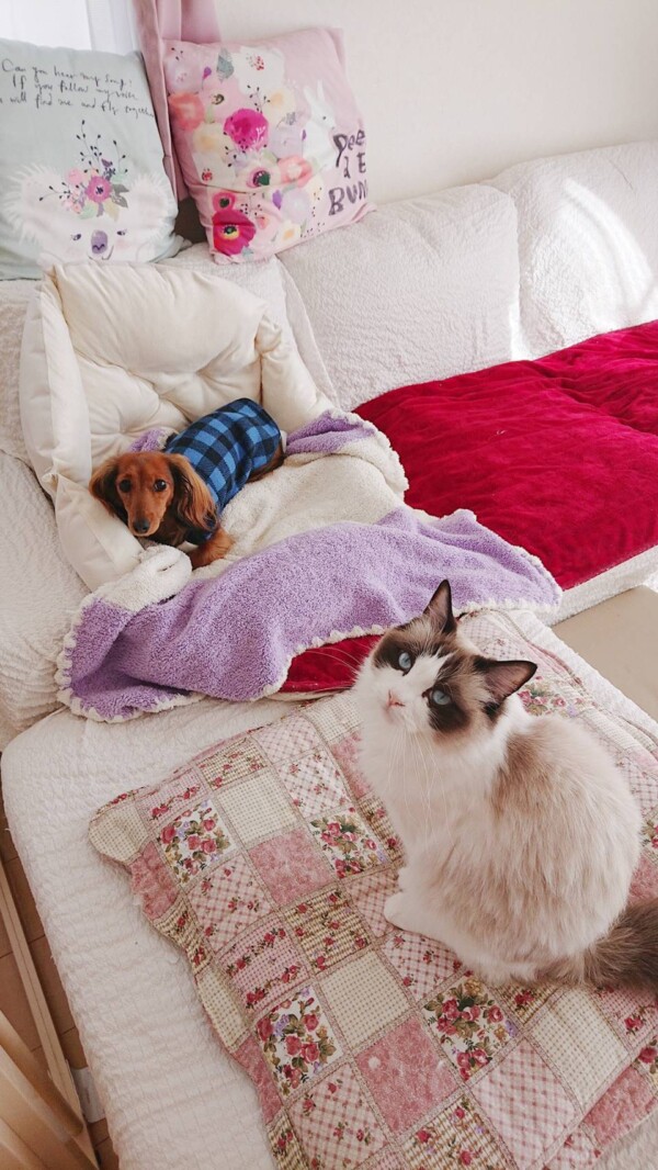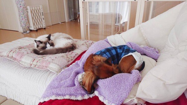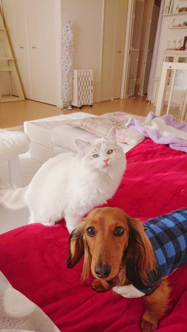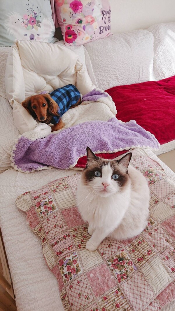 猫は胴が長いのでダックスとサイズが合うのです(*^▽^*)