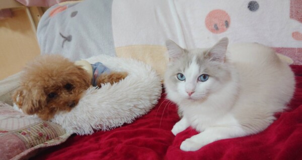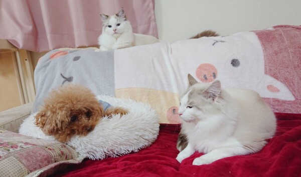 他の犬猫がいると安心するバーニー君🍀🍀🍀