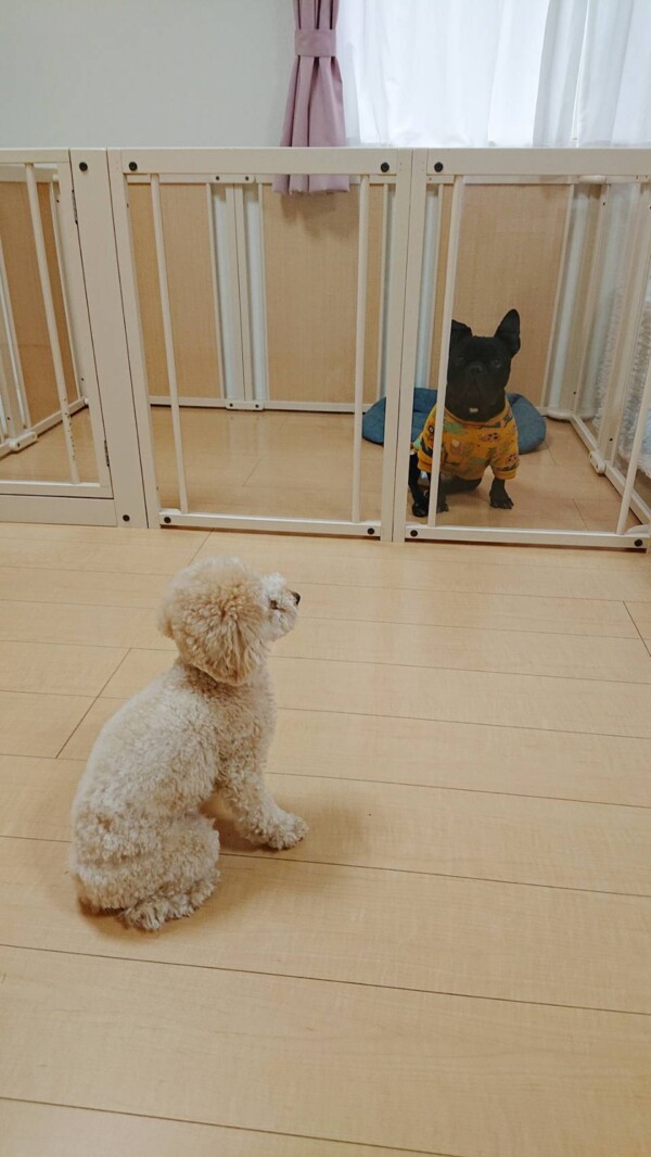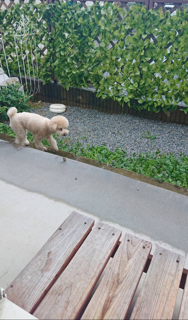 最初のお泊りの頃は、自分で庭への段差も降りられなかったり、降ろしたら怖くて登れなくて、いちいち「ワンワン!」とシッターを呼んでいましたが(*´艸`*)