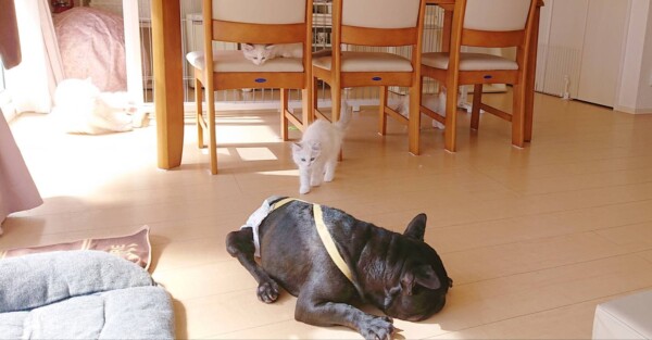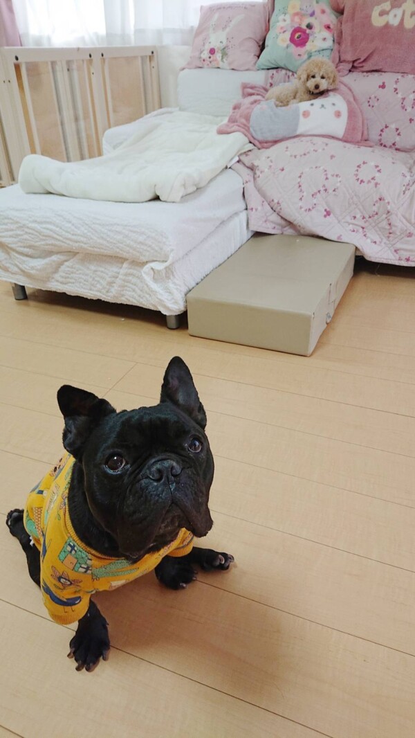 下半身麻痺なので、移動は足を引きずるのですが、前回までは一生懸命、デコデコとシッター後追いしていましたが、今回はご飯の時と、訪問シッターから戻って来た時のお出迎え位で(笑)
