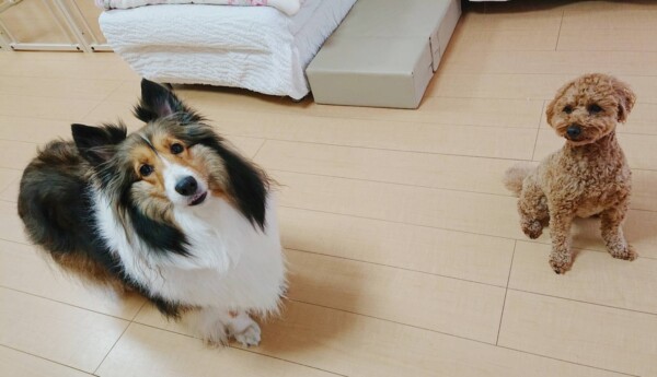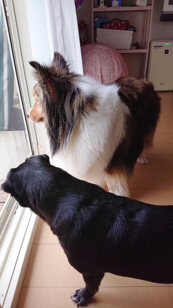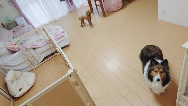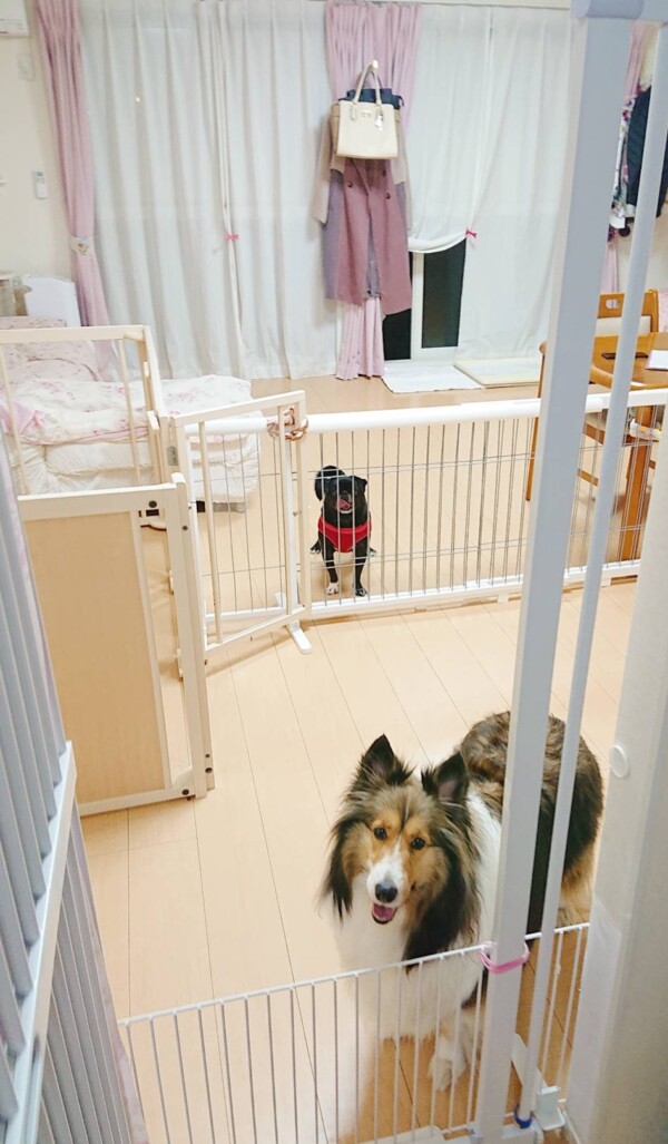 犬見知りのミルちゃんに考慮して部屋分けしてましたが、「私もお庭に出たいワン!」と言うので、一緒にしたら、意外と『お庭愛好会』で何となく上手くやれました(*´艸`*)(笑)